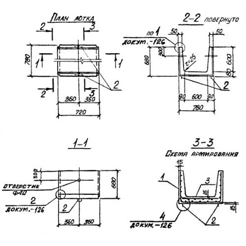 Л 5д Лотки теплотрасс доборные Серия 3.006.1-2/87.