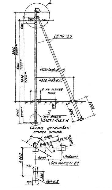 УА 10-2 Угловые анкерные опоры Серия 3.407.1-143.